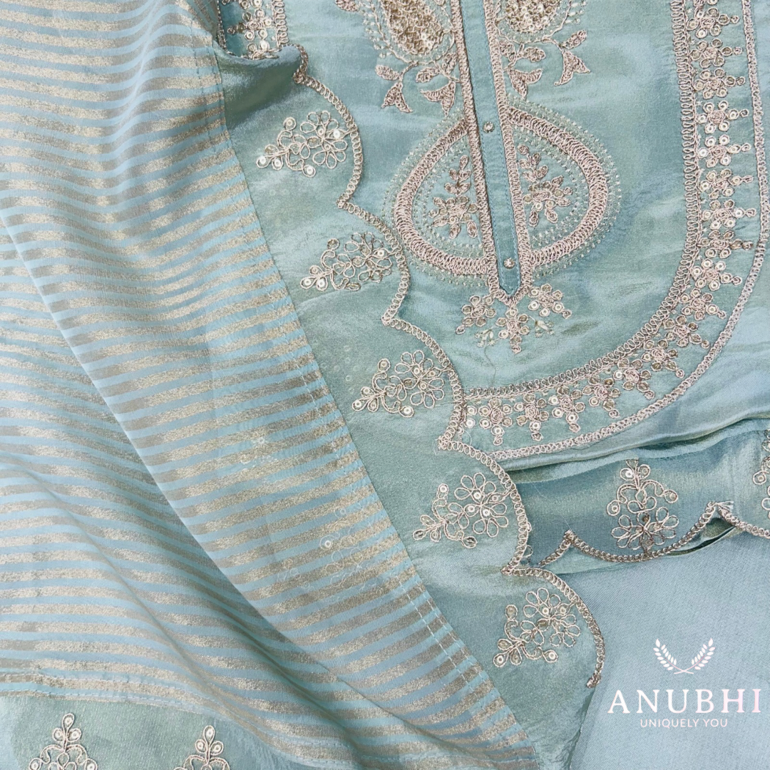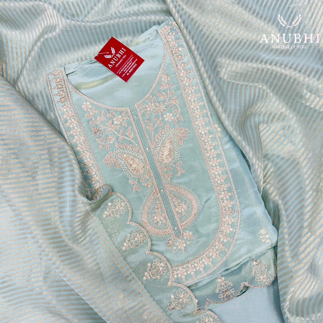 Be the first to review “EMBROIDERED TISSUE SHIMMER✨ “Make a Statement with flair in our Embroidered Tissue Shimmer Silk suit perfectly paired with a delightful Embroidered Shimmer Dupatta”🌟”